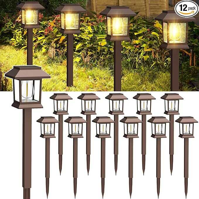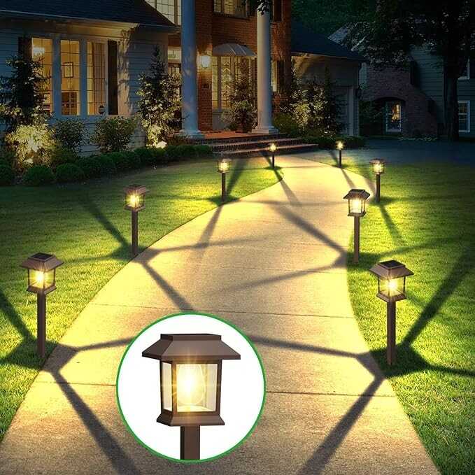 • 【UPGRADED 12 PACK BROWN PATHWAY LIGHTS SOLAR POWERED】Benany solar powered outdoor lights are powered by the sun, and each llight has a solar panel with a higher conversion rate, which charges much faster than other lamps on the market. They automatically charge during the day, over a period of 6-8 hours. Then, they turn on automatically at night, providing at least 8H of lighting. landscape lighting to creates a romantic atmosphere for your home.These solar pathway lights are your choice for outdoor lighting and decor.
