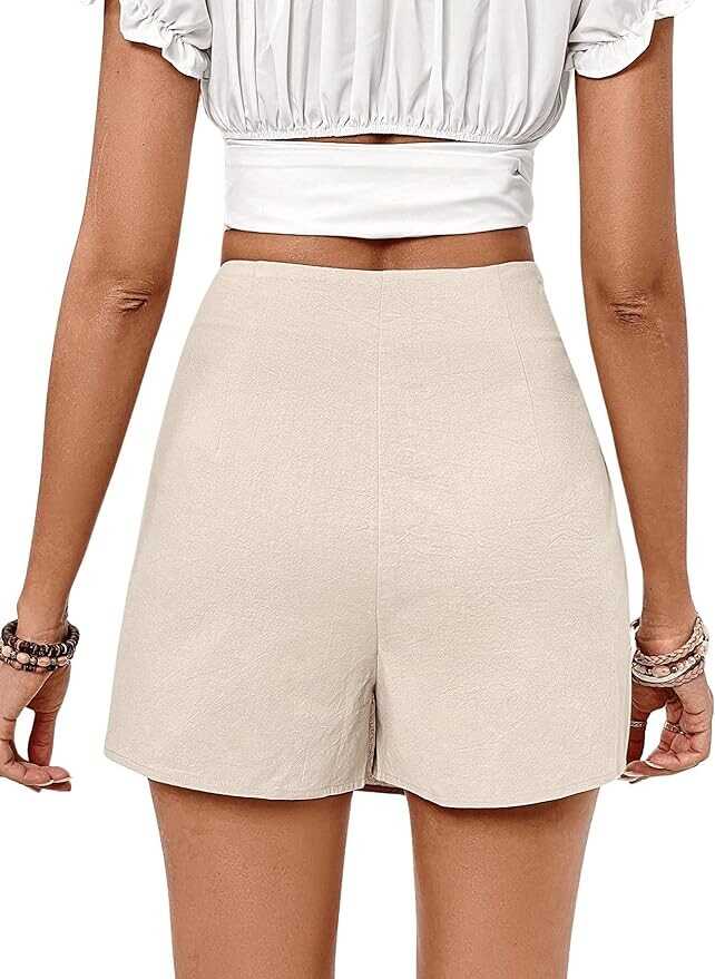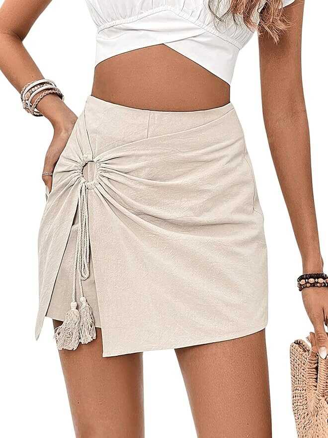 • Feature: Zipper fly, high waist, wrap, tassel trim, wrap, asymmetrical hem, women shorts, fashionable