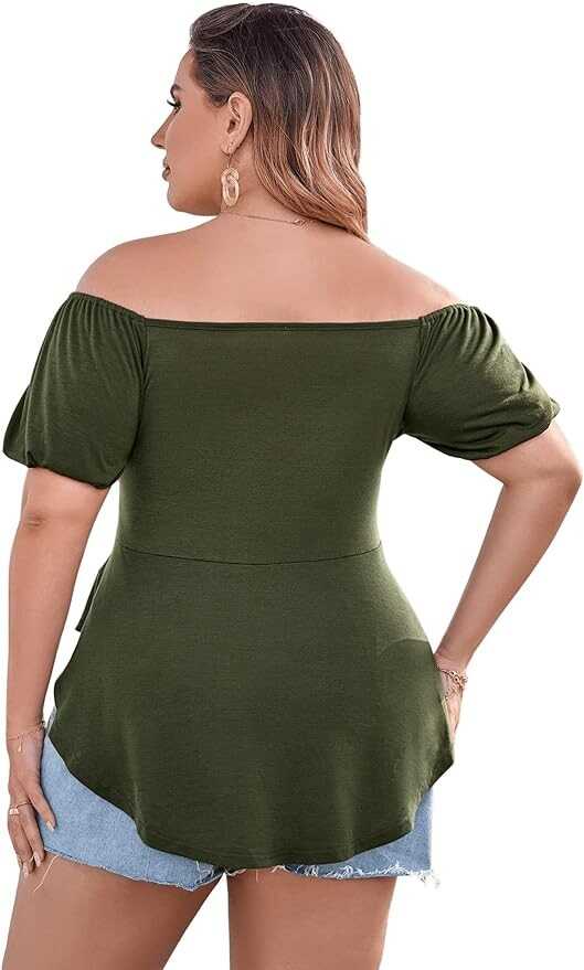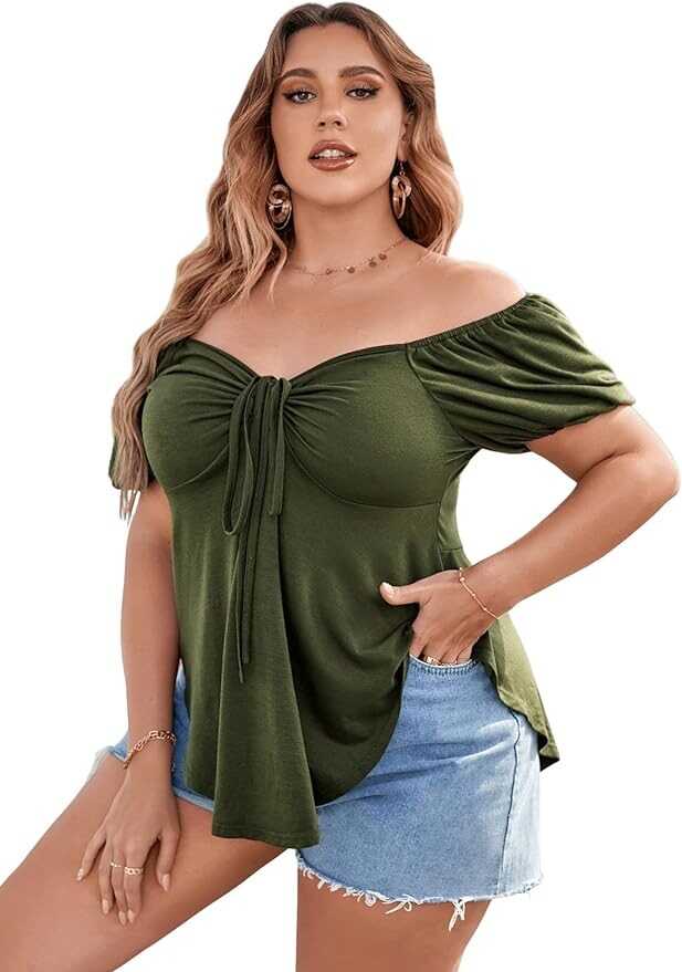 • Features: Off the shoulder, short sleeve, tie front, curved hem, pullovers, peplum blouse, sexy and fashionable