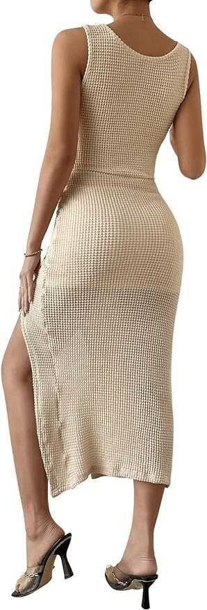• Feature: Deep v neck, sleeveless, cut out, drawstring, split thigh, ruched, twist, high waist, slim fit, fashionable