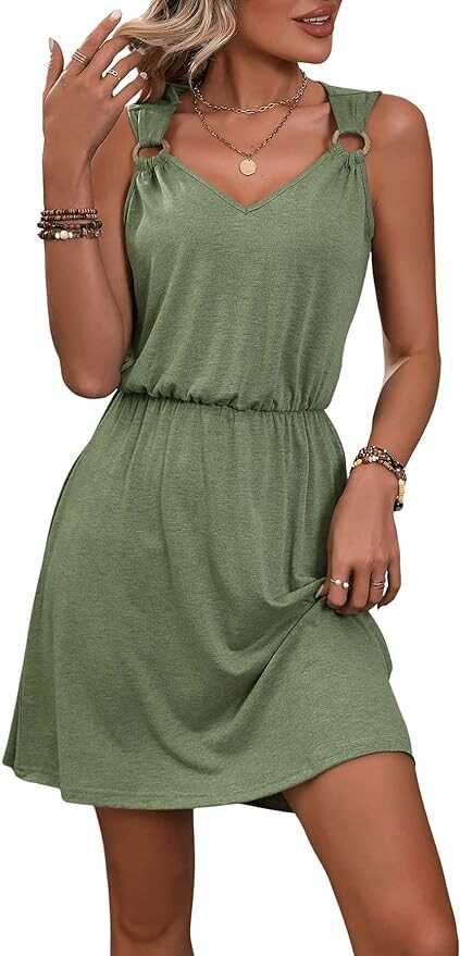SOLY HUX Women's Summer Dresses V Neck Sleeveless A Line Solid Short Dress