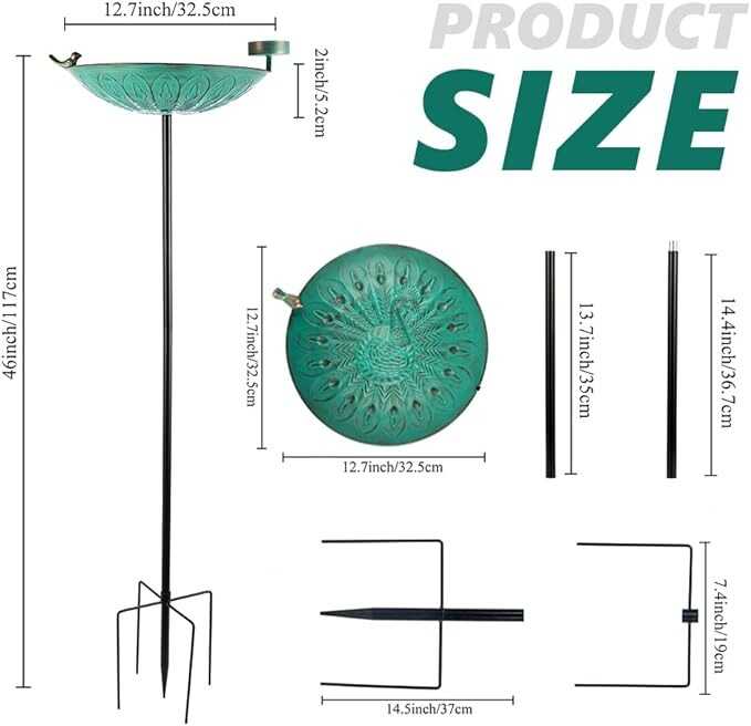 • ?【Premium Materials】This outdoor bird bath is made of high quality metal and it is covered with a safety coating. It is durable and is not easy to rust. Paired with novel peacock design, it will be a sight in your garden.