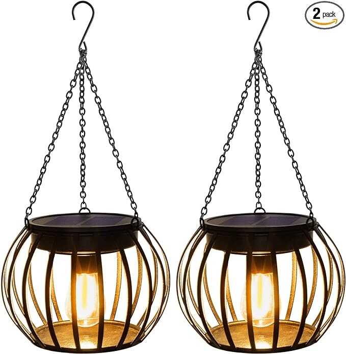 • ?【Retro Metal Solar Lanterns】The unique design makes solar hanging lantern the perfect outdoor decoration, you can hang it on your balcony, tree, fence, or place it on a table, lawn, or windowsill. The warm yellow lighting effect makes the atmosphere around the solar lantern warm and special. Perfect for garden, yard, backyard, pathway, walkway, patio, deck, balcony, home decoration, and a unique gift for any occasion such as Easter, Christmas, wedding, party, Halloween, birthday, etc.