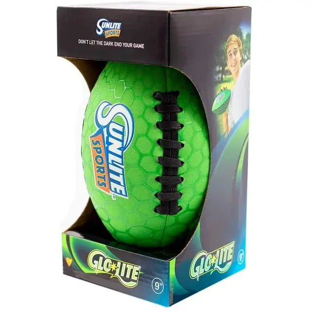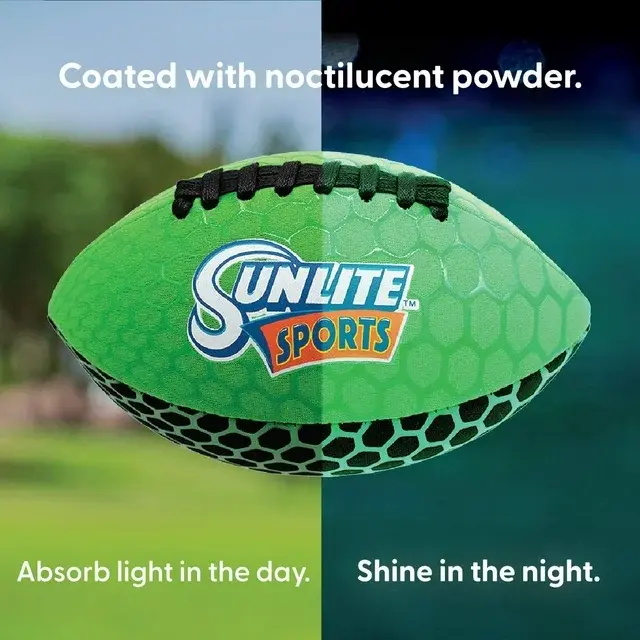 • [Glowing Feature] The Sunlite Sports Glow-Lite Football has the coolest design: glowing in the dark! While being played for an afternoon, this football will continue to glow for about half an hour after sunset.