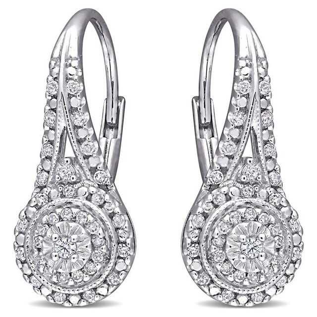 SuperJeweler Nearly 1/2 Carat Diamond Drop Earrings With Double Halo and Leverbacks, 3/4 inch for Women