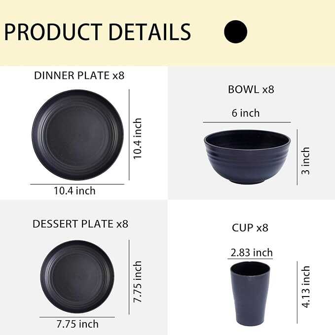 Supernal Wheat Straw Dinnerware Sets,Unbreakable Dinner Plates for 8,Microwave Dishwasher Safe,Reusable Dinnerware,Black Set 16pcs Plates, 8pcs Bowls, 8pcs Cups.