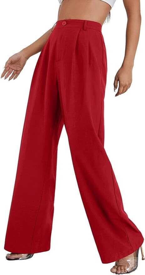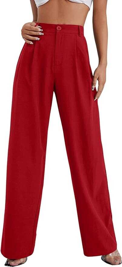 SweatyRocks Women's Casual Wide Leg High Waisted Button Down Straight Long Trousers Pants