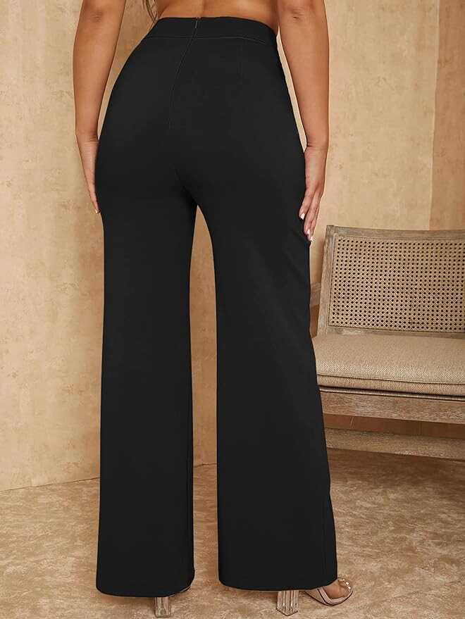 • Design: high waist,elegant solid design, flare leg long pants, asymmetrical, button, wrap, zipper, regular fit