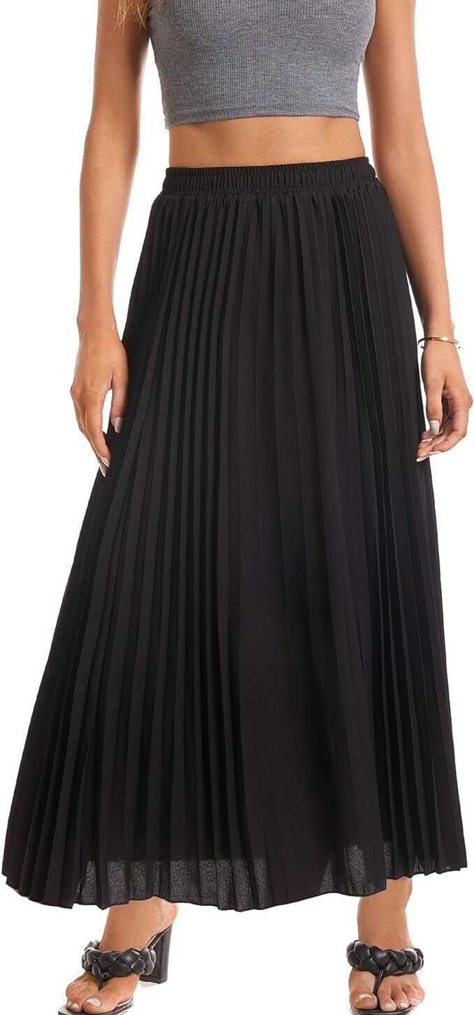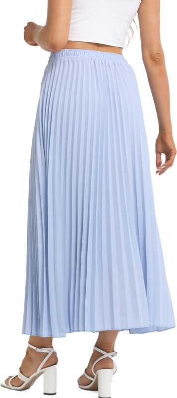 TEERFU Womens Elastic High Waist Flowy Pleated Skirt Chiffon Swing A-line Beach Maxi Skirt