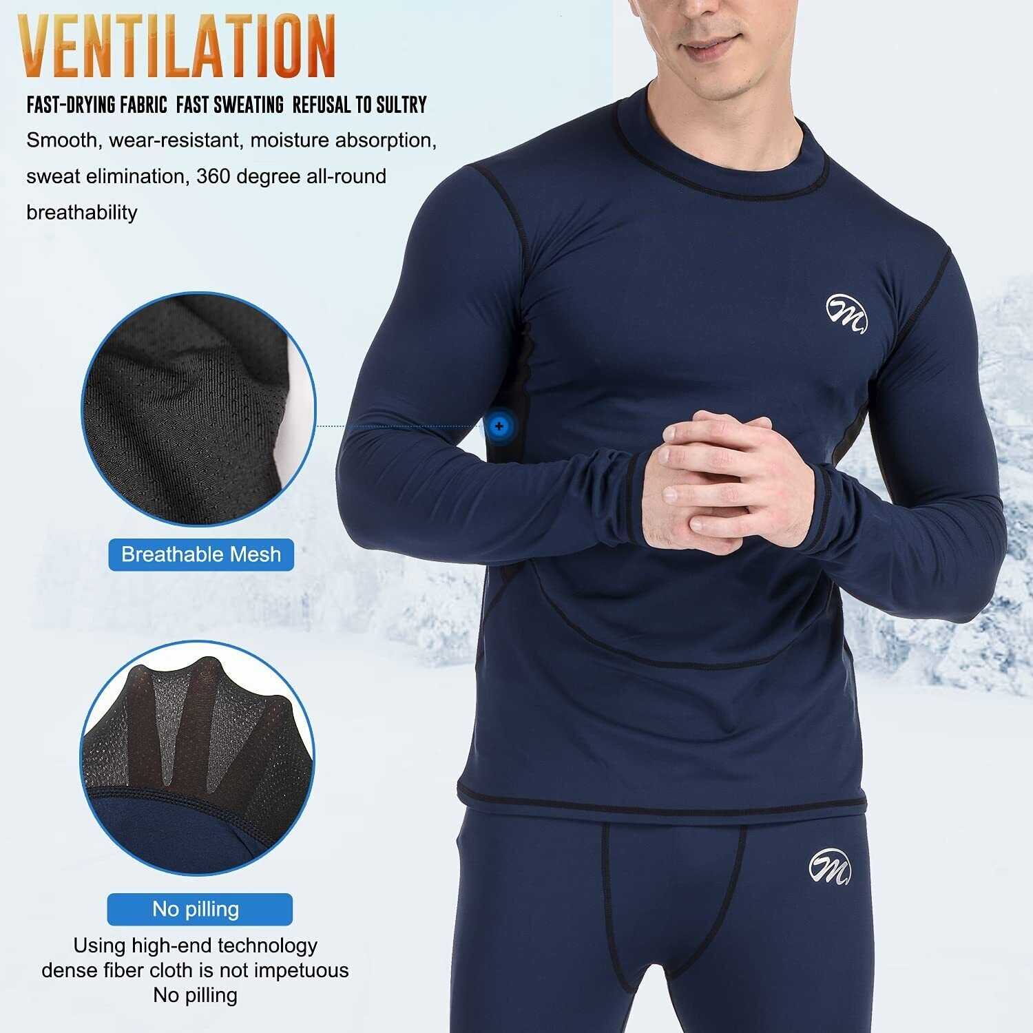 Thermal Underwear for Men Fleece Base Layer Top & Bottom Set Insulated Long John