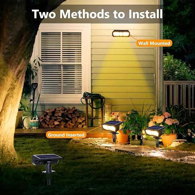 • Solar Powered Spot Lights: Solar energy supply, no extra utility electric cost, and no need to replace the battery. Built-in light sensor controls the solar flood lights automatically charging at daytime and auto on at dark (switch them to the “on mode” the first time you use them.)