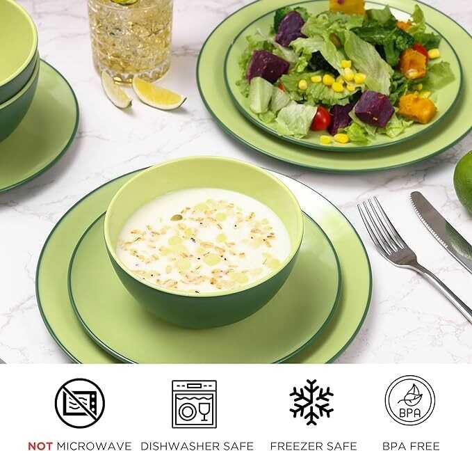 • Dinner Service for 4: TP creative and healthy avocado green dishes set with brilliant glow, includes 4 of each - 28 oz bowls, 10.6’’ dinner plates, 8.7” salad/dessert plates.