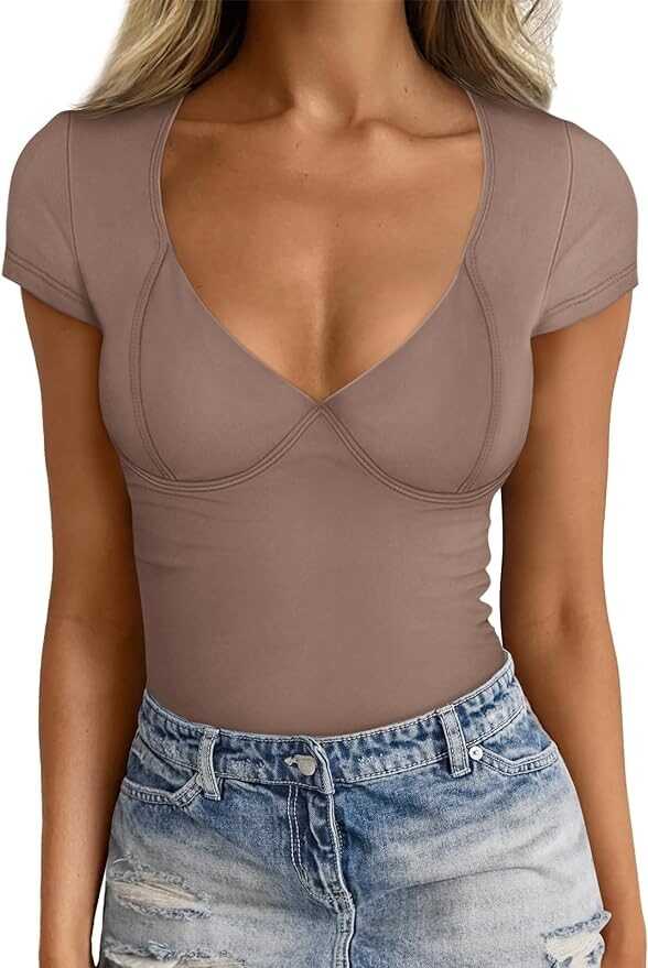• Chic design: Double layer design on the chest, support and flatter your chests perfect,soft stretchy style,scoop back design,slim fit,featuring sexy low cut v neck,huge curves for a sleek and fashion look for summer.