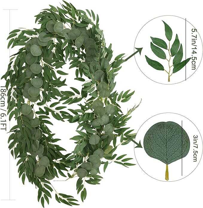 Trimgrace 1 Pack 5.9 Feet Artificial Eucalyptus Garland with Green Eucalyptus Leaves Vine for Wedding Backdrop Table Runner Centerpiece DIY Wreath Decor
