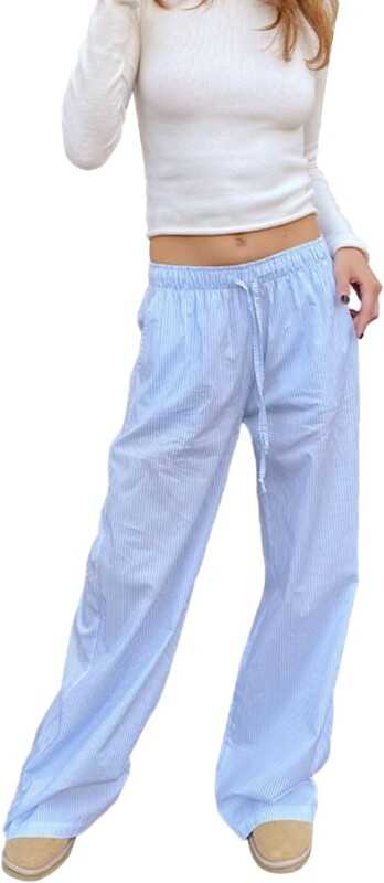 Tsultryofs Women Y2K Striped Long Pants Drawstring High Waist Wide Leg Trouser Casual Relaxed Fit Straight Lounge Pants