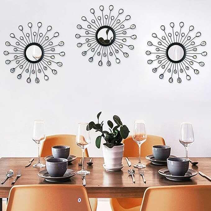 Uaussi 3 Pack Crystal Sunburst Wall Mirror Décor Rhinestone Mirrors Decorative Home Wall Art for Living Room Bedroom Entryway Visit the Uaussi Store