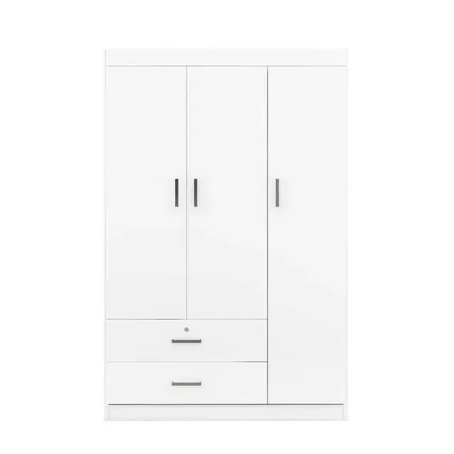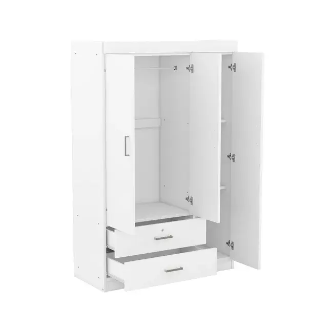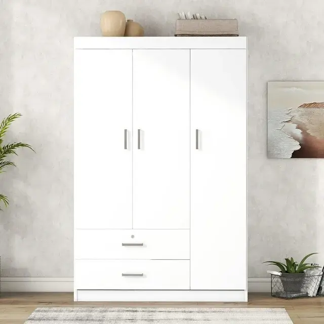 UBesGoo 3-Door Wardrobe, Wide Armoire with 2-Drawers, Clothing Rod and 3-Shelves in White