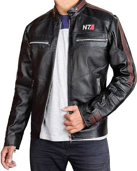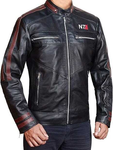 UGFashions N7 Costume Mass Street Fighter Red Stripes Motorcycle Game Cosplay Black Leather Jacket