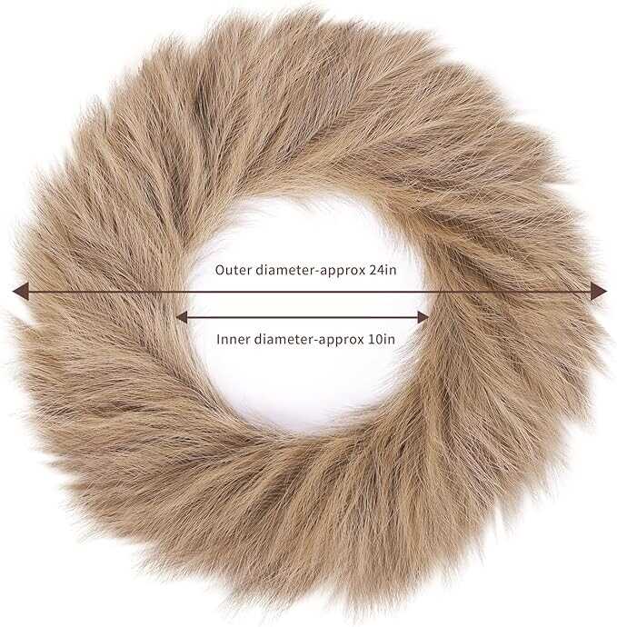 PREMIUM CRAFTSMANSHIP: This pampas grass wreath is crafted from high-quality silk, giving it a lush and natural appearance. Each wreath consists of 108 pampas stems, ensuring a dense and fluffy composition. With a diameter of approximately 24", it creates an eye-catching focal point that complements various design styles.
