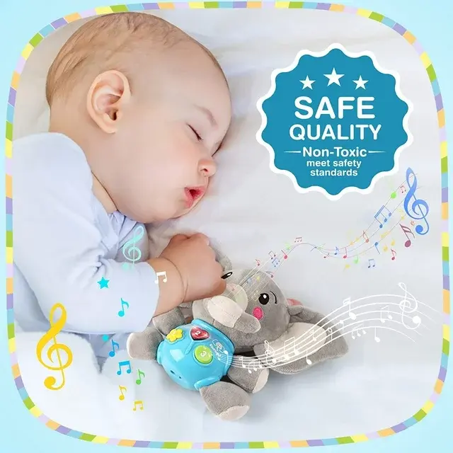 • Parent-Child Interaction Anywhere:�Easy to carry with 7-inch size and 200g weight, the size of the plush elephant musical toys makes a great crib toy and the perfect size for a Baby's Hands. Soft educational elephant baby toy creates a family fun as a Parent-Child Interaction toy.