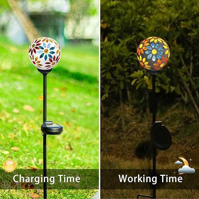 • Unique Design: Solar garden light is designed with mosaic globe, and solar stake light is beautiful enough to create a romantic atmosphere for you and attract your neighbor's eye to your yard