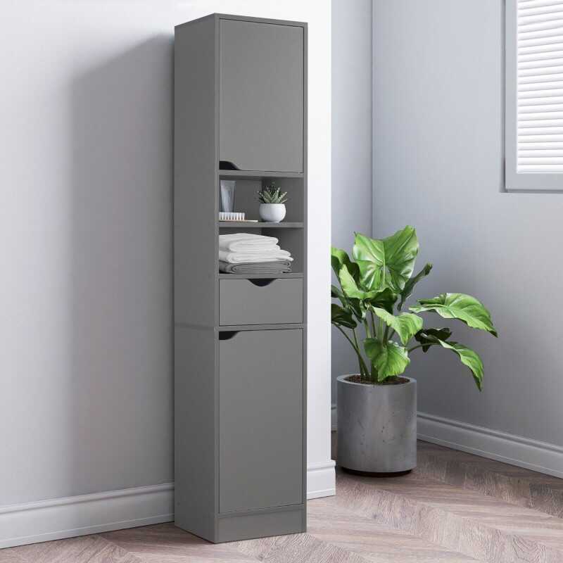 Ventura Wooden Tall 2 Door 1 Drawer Shelves Bathroom Cabinet Storage Unit Modern