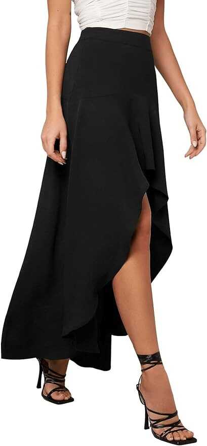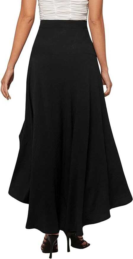 Verdusa Women's Elastic Waist Asymmetrical High Low Flared Maxi Skirt