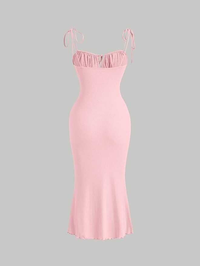 Verdusa Women's Ruched Knot Front Tie Shoulder Sleeveless Fishtail Bodycon Cami Dress