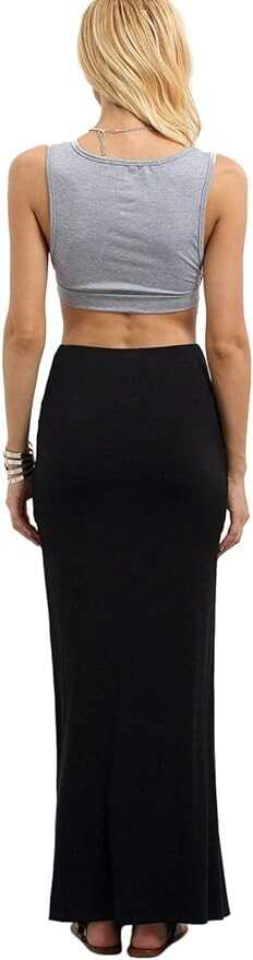 • Elastic waistband, full length, maxi skirt with high slit