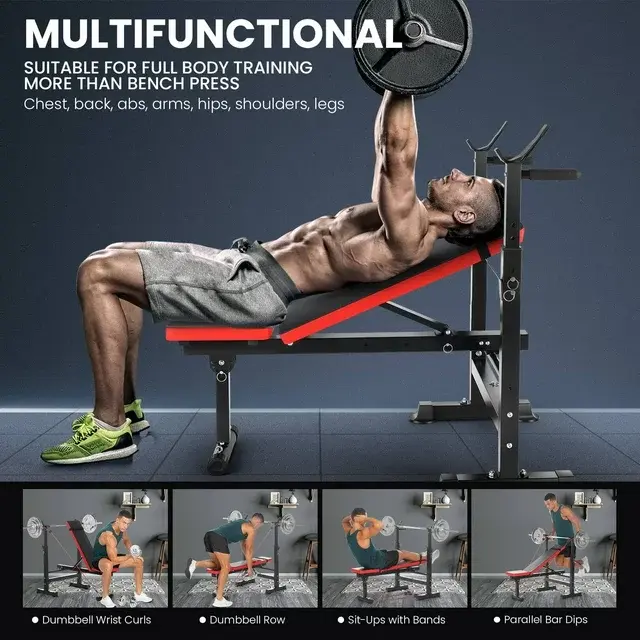 No time flying around the gym or maybe you prefer to enjoy your full body workout at home? A piece of great exercise equipment for beginners or fitness professionals, VIBESPARK Olympic adjustable weight bench is a perfect addition to any home gym, you can do a full body workout at home, shaping your abs, back, chest, hips, and arms, hamstrings, and core. More importantly, this weight lifting has a stable steel frame structure and high-quality thickened steel pipe to ensure its durability and protect your safety. Soft cushions ensure your workout is comfortable and reduce muscle fatigue. At the same time, its adjustable function helps you complete different intensity training, whether at home or in the gym, it is a perfect choice for a full-body workout!