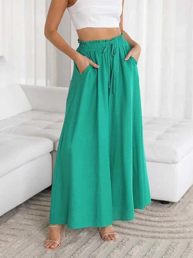• ???【Features】Women's beach long trousers are designed with high waist pleated trouser belt, elastic and stretchy waistband, adjustable drawstring waist, two functional side slant pockets,solid color&printed,loose fit, Super Wide Leg, drapey full-length, Extra Length, especially suitable for tall ladies.