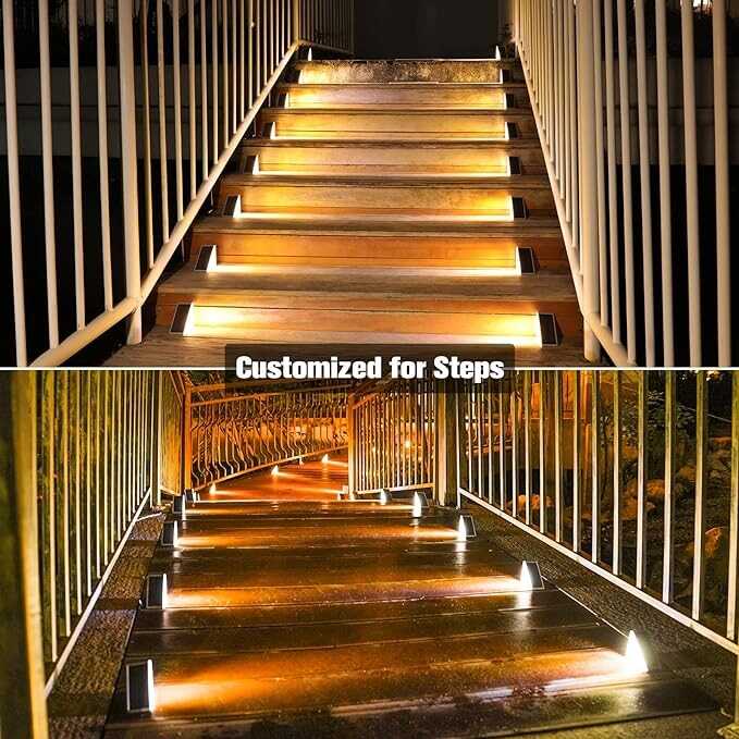 【Stylish and Functional】Solar step light can create a bright beam of light on each step, allowing every inch of the stairs to be clearly visible and reducing the risk of accidents or falls. Additionally, these step light outdoor can enhance the aesthetic appeal of the patio step, improving the overall appearance of outdoor steps. Don't settle for ordinary outdoor step lighting – upgrade to super lighting solar stair lights and enjoy the perfect combination of style and functionality.