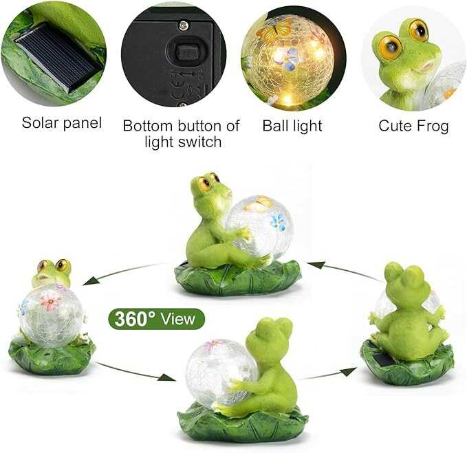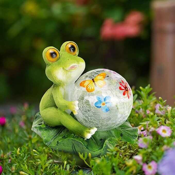 VZVXCC Frogs Garden Outdoor Decor Statue-Garden Frog Outdoor Decor with Solar LED Crackle Ball,Waterproof Resin Cute Animal Sculpture Lights, Ideal Ornament for Yard Lawn Patio