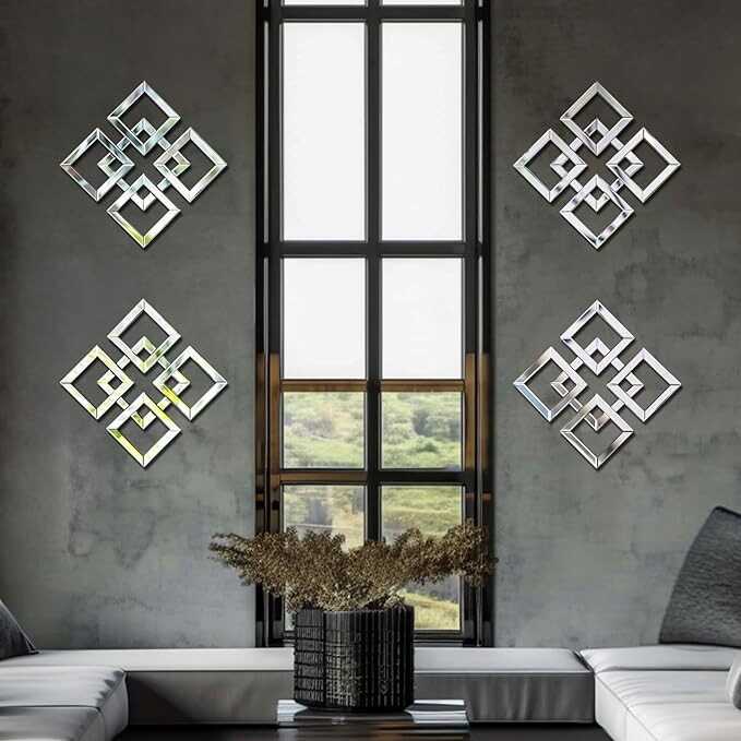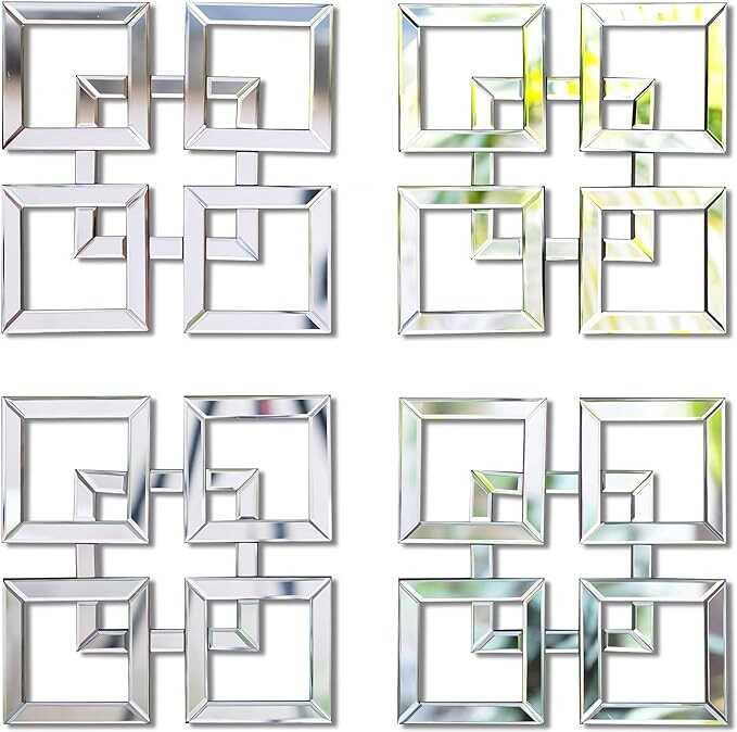 Walasis Decorative Mirrors for Wall Decor Modern - Geometric Wall Mirror 12inch Silver Square Glass Art with Beveled Fashion Mirrored Accent for Living Room Bedroom Bathroom Entryway 4 Pcs