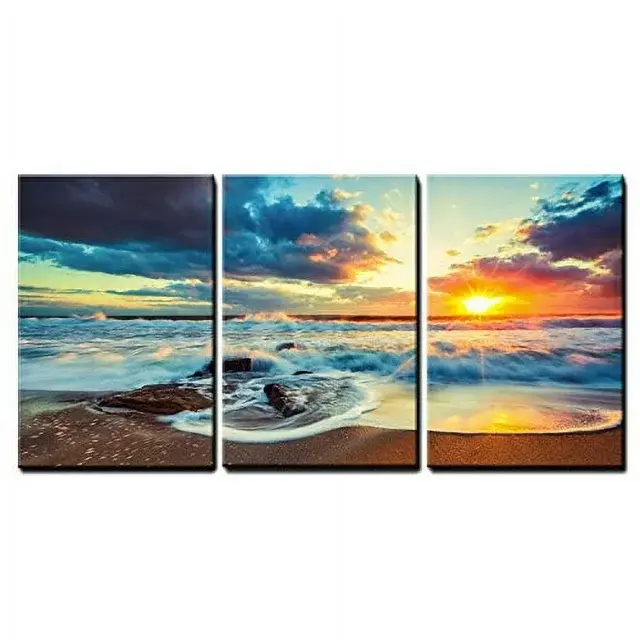 wall26 - 3 Piece Canvas Wall Art - Beautiful Cloudscape Over The Sea, Sunrise Shot - Modern Home Art Stretched and Framed Ready to Hang - 16"x24"x3 Panels