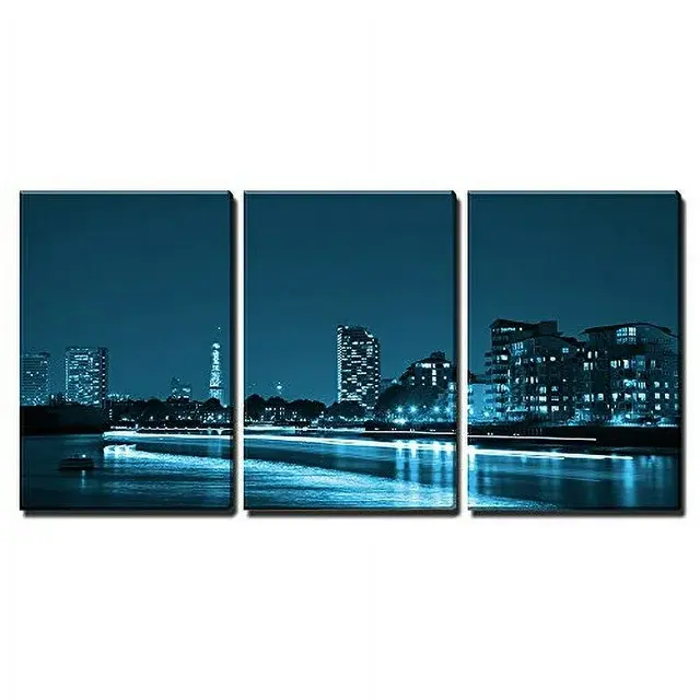 wall26 - 3 Piece Canvas Wall Art - City Full of Light at Night - Modern Home Art Stretched and Framed Ready to Hang - 24"x36"x3 Panels