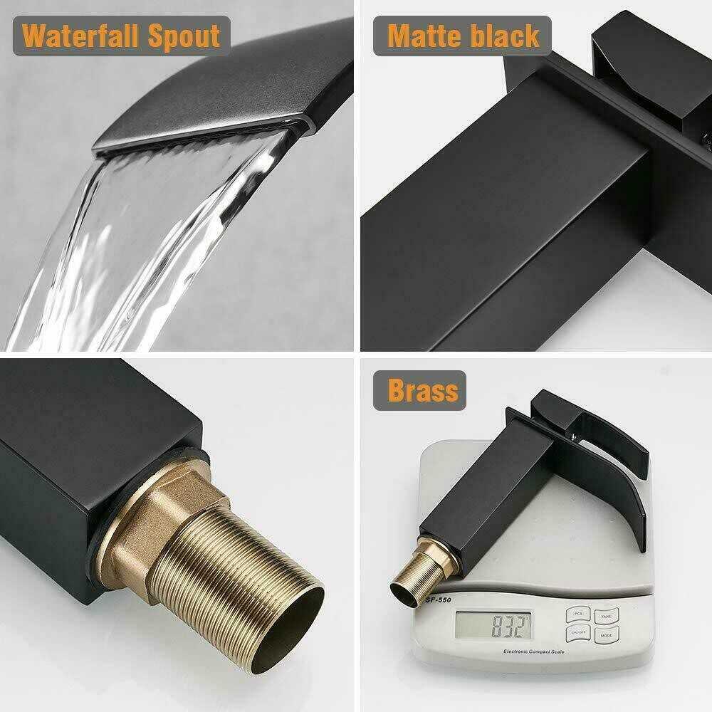 Waterfall Bathroom Sink Faucet Single Handle Hole Vanity Mixer Taps with Cover