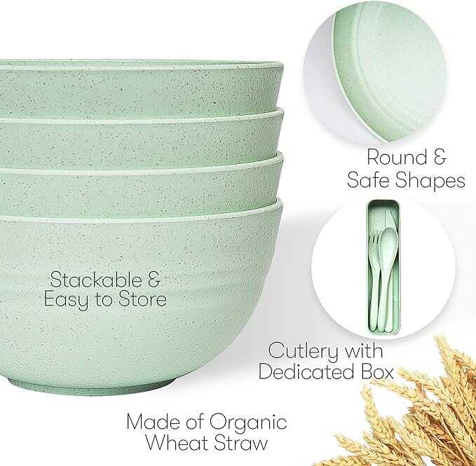 • Safe Dinnerware - Made with natural organic wheat straw and food grade PP this lightweight dinnerware set is 100% BPA free, gluten-free and odorless. Every purchase helps avoid wasting and burning wheat straw, allowing for cleaner air and a healthier life for everyone.