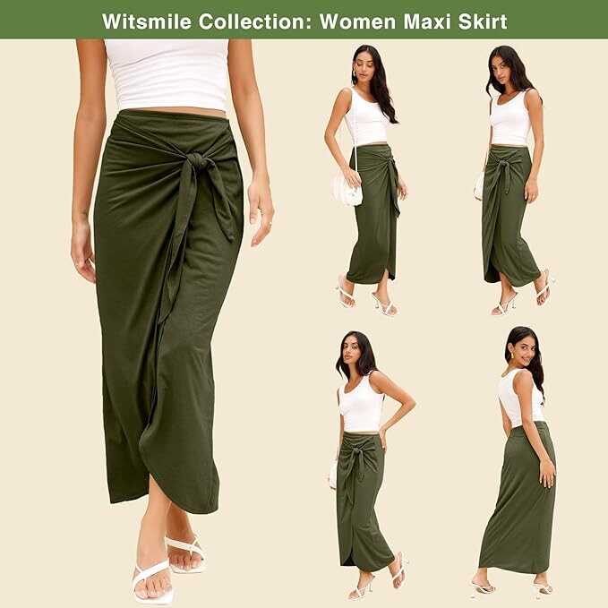 You can go to cocktail party with this skirts for women maxi length and a crop top, go to beach with amazing sarong wrap skirt and bikini, out for dating with stain cowl neck top and this long skirt, go to work with basic tee tuck into this classic pencil skirt below knee for a chic look.