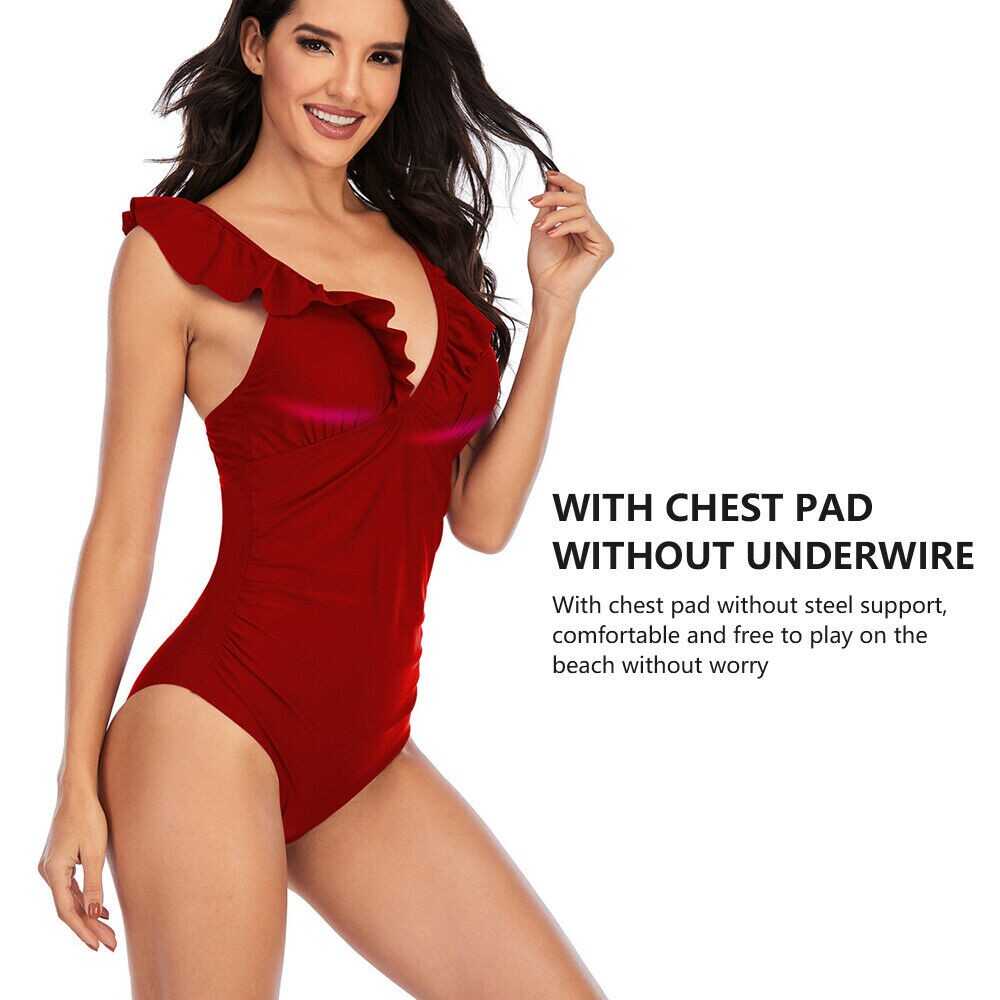 Women One Piece Swimsuits Tummy Control Bathing Suit Ruffle V Neck Swimwear