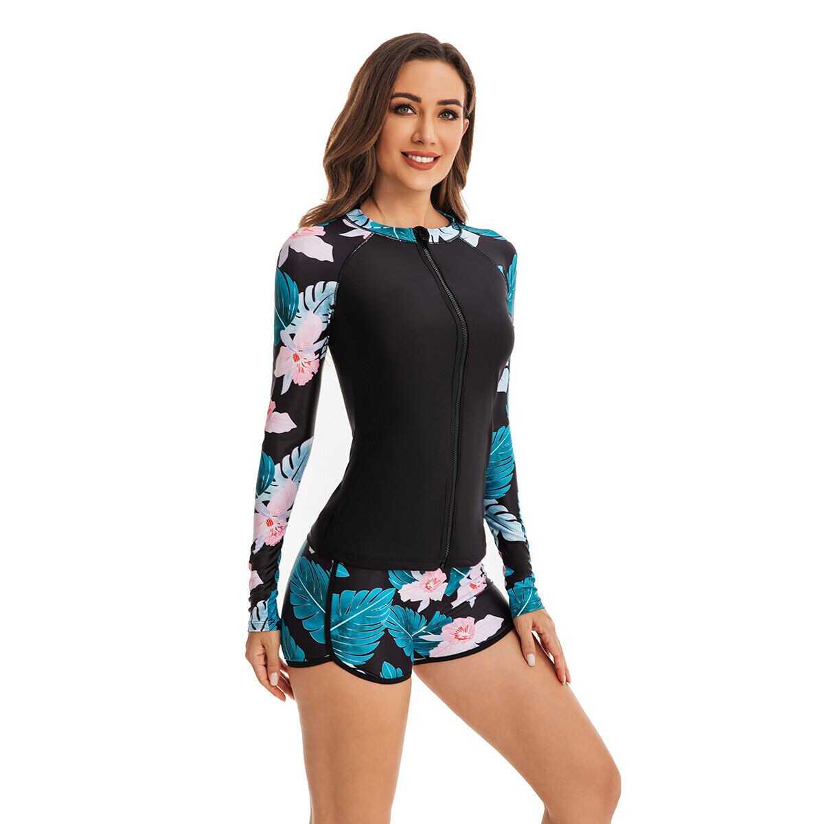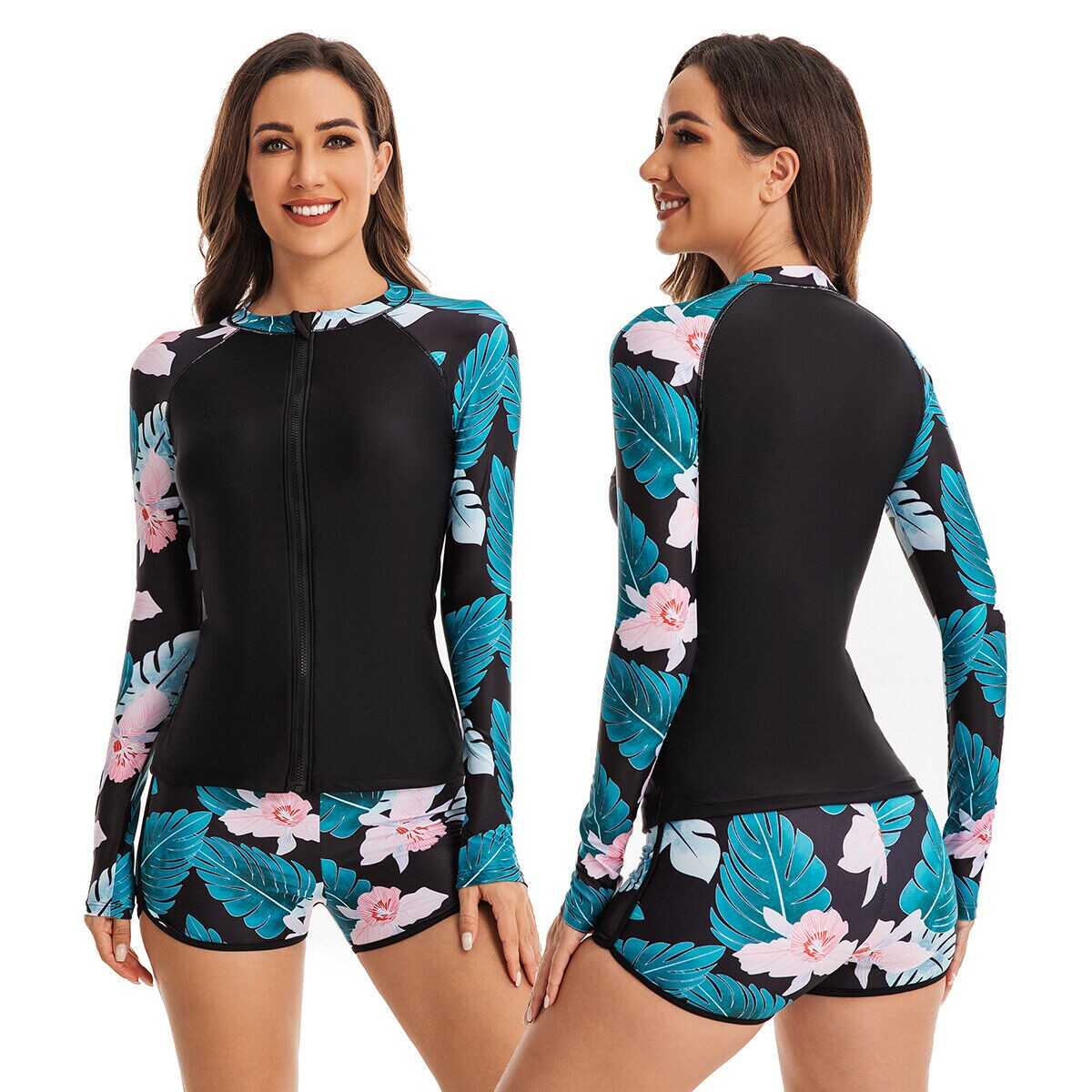 Women Surf Swim Swimsuit Bathing Suit Long Sleeve Two Piece Rash Guard Swimwear
