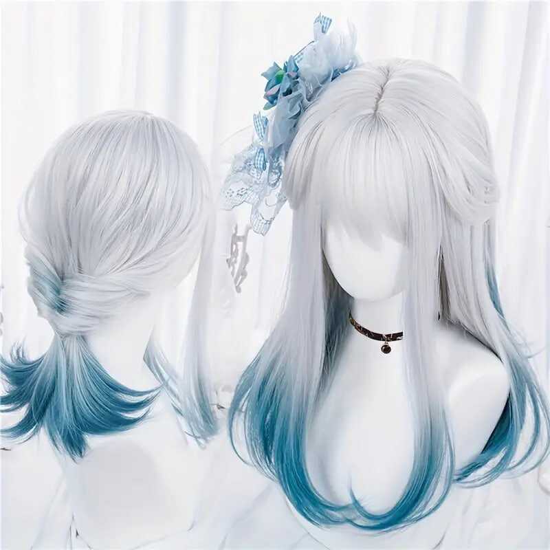 women synthetic wig long straight ombre two tone silvery grey blue hair for cosplay with bangs anime cosplay wig costume wig for halloween party details 0women synthetic wig long straight ombre two tone silvery grey blue hair for cosplay with bangs anime cosplay wig costume wig for halloween party details 0
