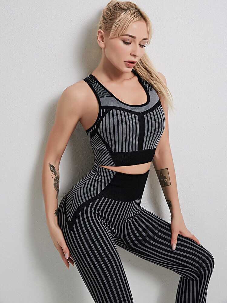 Women Workout 2 Piece Outfits Seamless High Waist Yoga Legging Sport Bra Gym Set