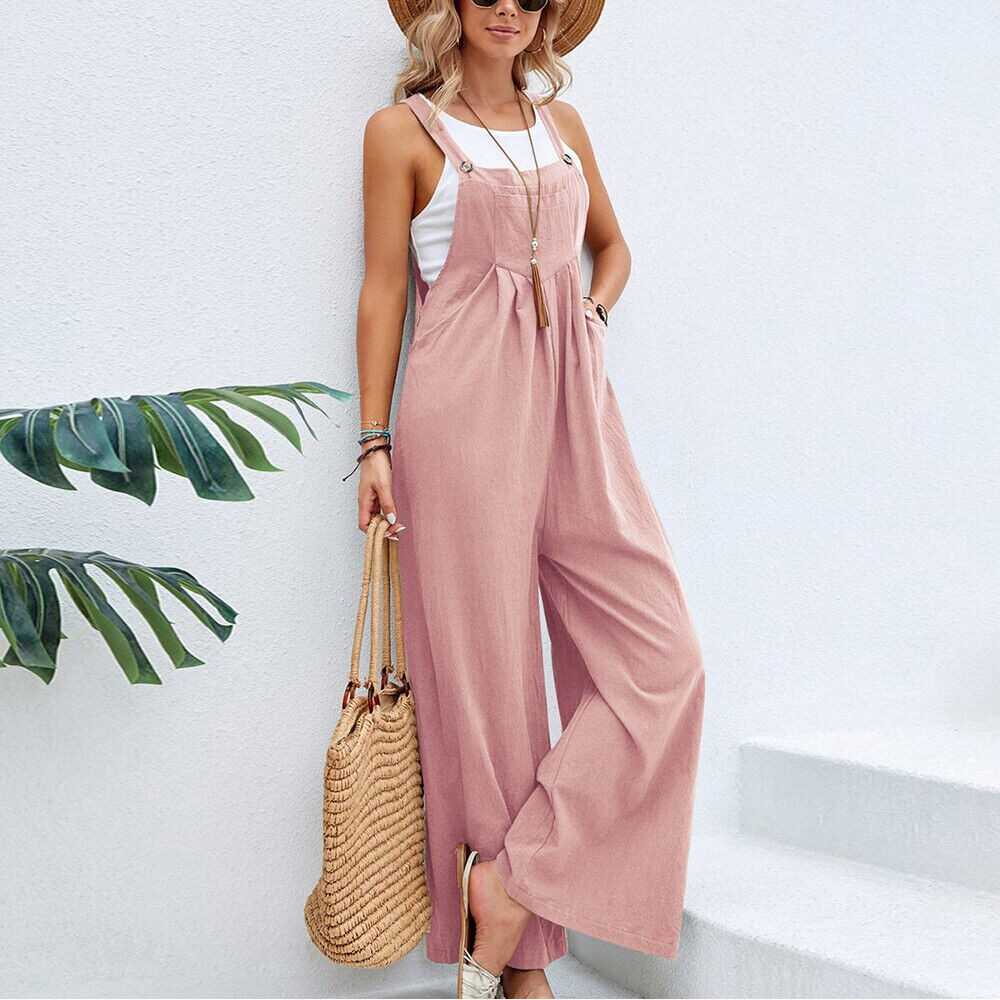 Women's Bib Overalls Sleeveless Loose Wide Leg Jumpsuits Rompers with Pockets