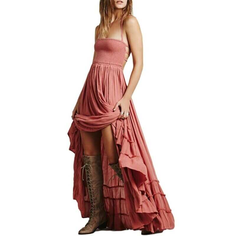 Women's Holder Strap Maxi Dress Solid Color Smocked Long Dress Loose Fit Dress