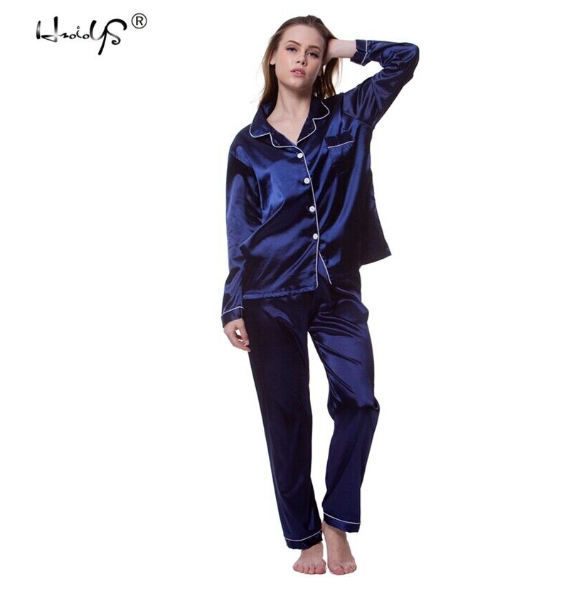 Women's Satin Pajama Set Classic Button Down Loungewear Long Sleeve Sleepwear Pj