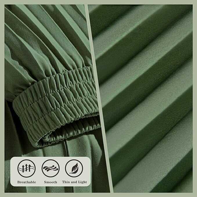 Green Pleated Skirt Size: XS, S, M, L, XL, XXL; The Basoteeuo Midi Long Skirts Easy wash, Easy hand wash or machine washable in cold water; hang dry