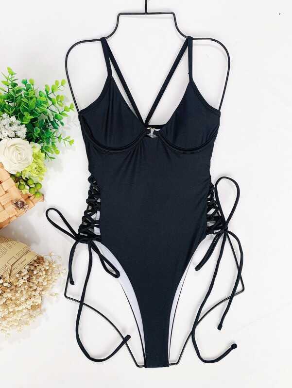 Womens String Bandage One Piece Swimsuit Cut Out Monokini Push Up Bathing Suits
