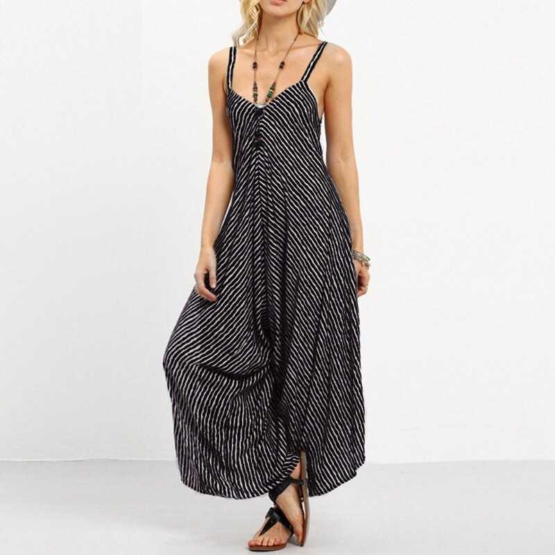 Women's Striped Printed Suspenders Loose One-piece Wide Leg Pants Jumpsuit