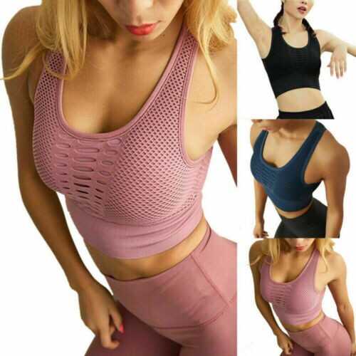 Women's Yoga Padded Sports Bra Backless Workout Seamless Racerback Gym Crop Tops